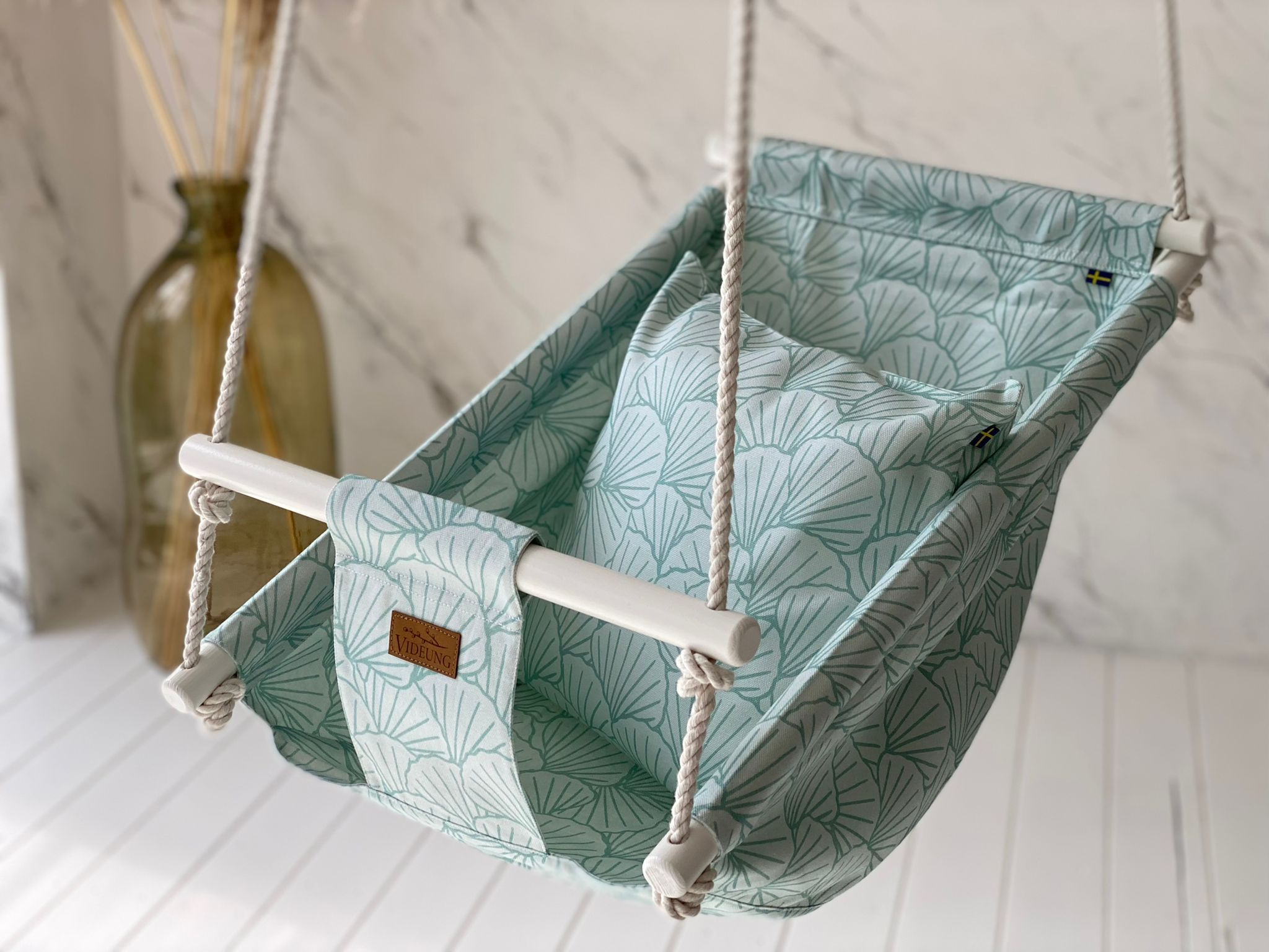 - Två metallringar för att hänga upp gungan medföljer
